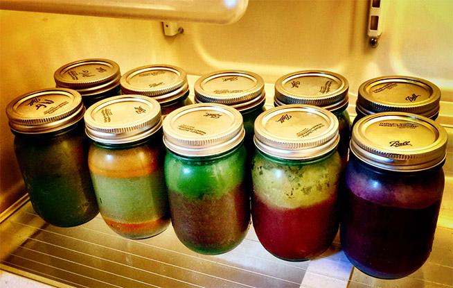 TIP #1: I didn’t love the process of making juice, so I bought a couple dozen mason jars and would have marathon juicing sessions about twice a week. Most of the juice would go in the freezer, with a day or two in the fridge. I would bring one day’s worth out of the freezer each night so I always had thawed juice ready to go.