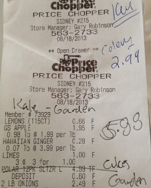 And another Team Rebooter just showed her receipt. She grows some of her own produce so she just wrote that in – that works perfectly too!